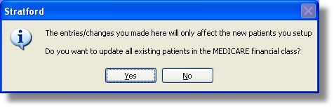 If you click the 'Yes' button, Stratford will change all existing patient's matching financial class so that they have the same values.