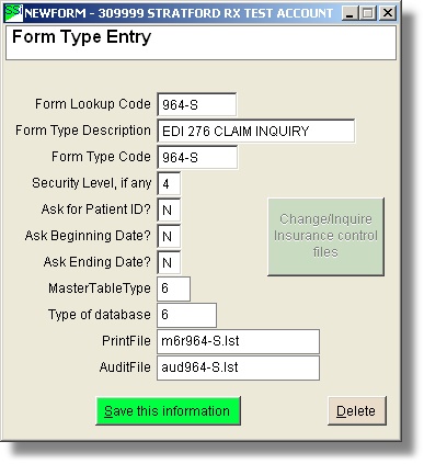For the purpose of this topic, we will assume that you are using the form type 964 to transmit an ANSI 837 transaction set (claim) to your Medicare payer. To make things easier, we will use the same control files for the ANSI 276 transaction set (claim status request).